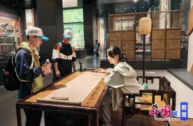 步入竹文化博物馆牛顺网,仿佛穿越进一部“竹的立体史诗”。在“竹韵千秋颂”展厅内,同学们跟随讲解员的脚步一起探秘竹史,了解竹用万千,体验竹间雅趣,感悟竹里风骨,在古色古香的展厅里品味竹韵悠长。更值得一提的是,展厅还融合了现代AI技术,一根根话筒勾连起同学们与古人语音对话的桥梁,同学们俯身低语、就有古人随声应答,令人兴味盎然。